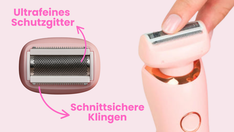 Hypoallergene Klingen und Schutzgitter sorgen für glatte Haut ohne Schnitte, Irritationen oder eingewachsene Haare.